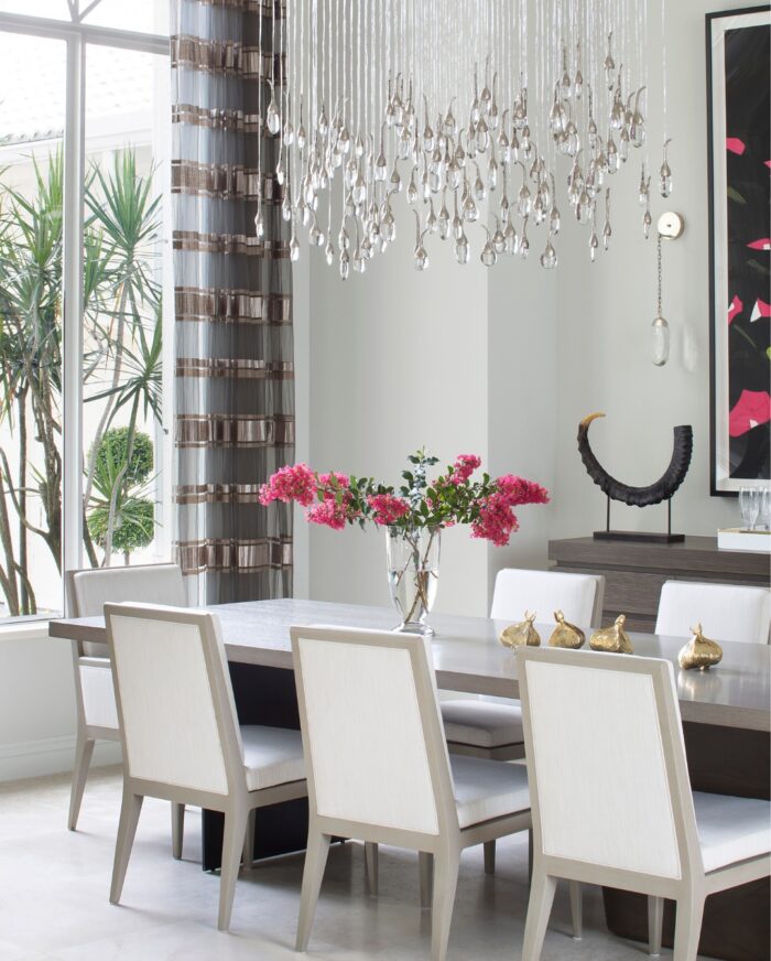 Lighting plays a critical role in this balance. Sculptural fixtures anchor the room and set the mood, while natural light is carefully considered to enhance flow and atmosphere. Materials are chosen for longevity and texture, creating depth without excess. Art and accessories are selected with meaning, allowing each space to tell a story that reflects the people who live there.