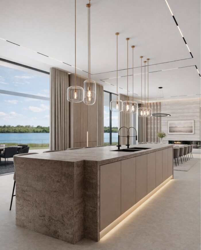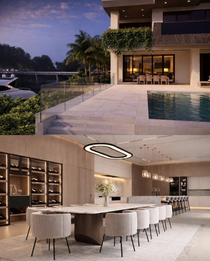 Every material, finish, and spatial element was selected to create a harmonious connection between architecture and environment. Expansive glazing frames the Intracoastal views, while layered textures and refined detailing add depth and character throughout the residence.