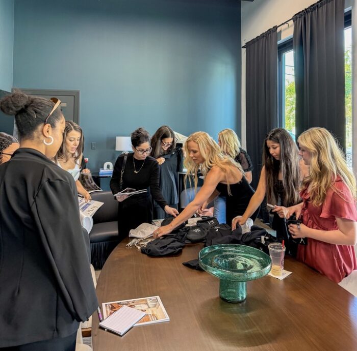 The experience continued with a guided tour of the thoughtfully curated space she designed for Holly Meyer Lucas, owner of Meyer Lucas Real Estate and Hype Boss Agency, and a close friend. As she walked the students through the environment, Krista illuminated the intention behind each detail—from brand storytelling to spatial flow—demonstrating how design, at its best, becomes an extension of identity. Closing out the visit, Krista invited questions, encouraging an open dialogue that allowed students to engage more deeply. closed by handing out her merch as a way of thanking the students—for showing up, for investing in their future, and for being part of the next wave of talent that will continue to shape and grow the interior design industry she holds so close to her heart.